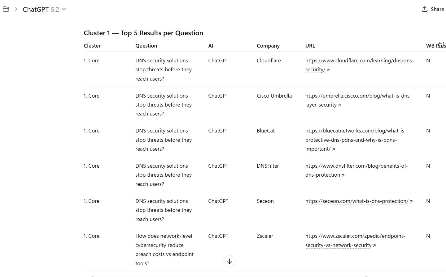Who Gets Cited for "DNS Security Solutions" on ChatGPT